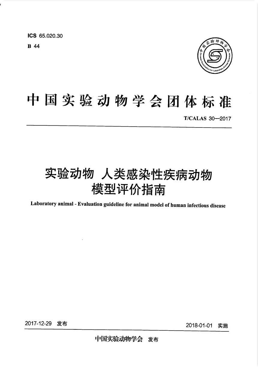T-CALAS 30-2017 實驗動物 人類感染性疾病動物模型評價指南