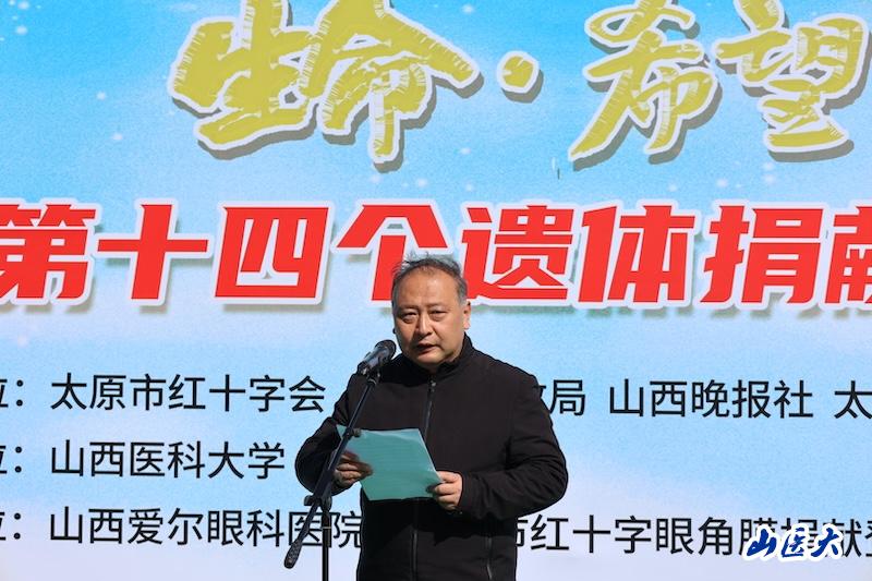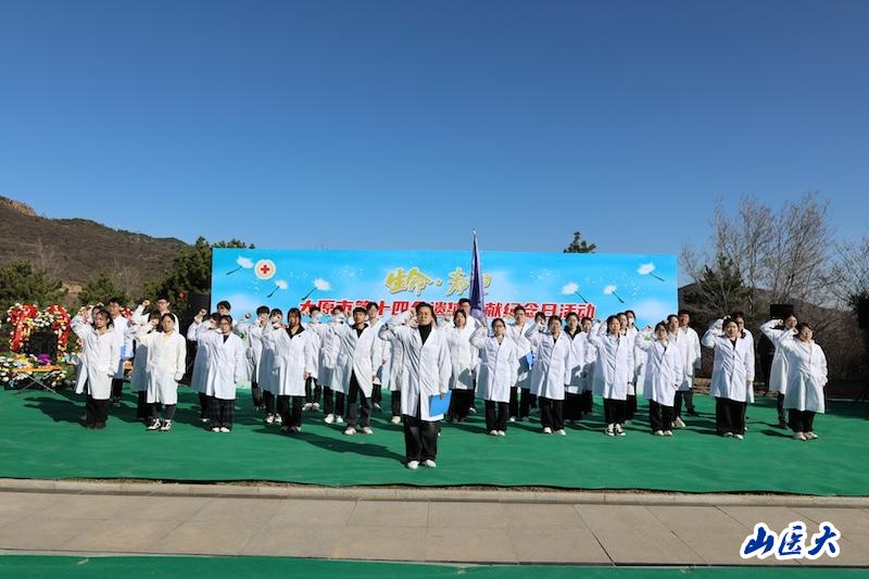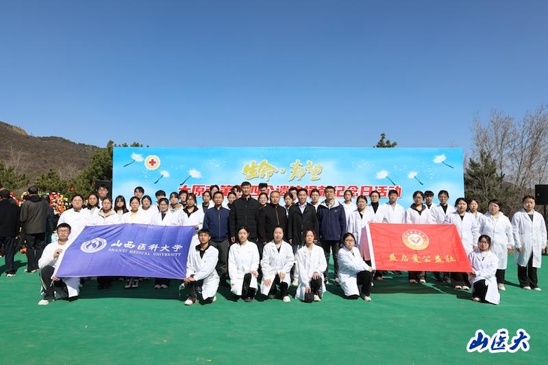 為緬懷無私奉獻的捐獻者,弘揚人道主義精神,4月1日上午,由太原市紅十字會、太原市民政局、山西晚報社共同主辦,c7c7.app承辦的太原市第十四個遺體捐獻紀念日活動在天龍山仙居園舉行。我校基礎醫學院黨委書記王卓,校團委副書記常彥民及50余名師生代表參加了活動。