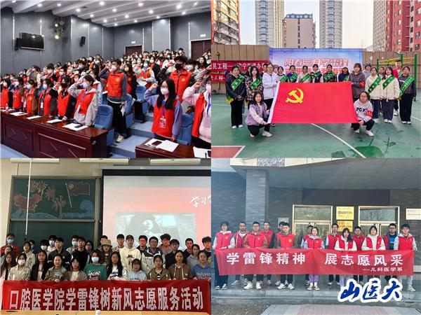 校團(tuán)委廣泛組織各級(jí)志愿服務(wù)組織和社區(qū)進(jìn)行對(duì)接并開展志愿服務(wù)活動(dòng),校志愿者服務(wù)總隊(duì)、第一臨床醫(yī)學(xué)院、第二臨床醫(yī)學(xué)院、第三臨床醫(yī)學(xué)院、第五臨床醫(yī)學(xué)院、基礎(chǔ)醫(yī)學(xué)院、法醫(yī)學(xué)院、口腔醫(yī)學(xué)院、護(hù)理學(xué)院、公共衛(wèi)生學(xué)院、麻醉學(xué)院、管理學(xué)院、人文社會(huì)科學(xué)學(xué)院、體育教學(xué)部等院系志愿者積極走進(jìn)太原市萬柏林區(qū)紡織街社區(qū)、麗華苑社區(qū)、迎澤區(qū)解放南路二社區(qū)、老軍營二社區(qū)、小店區(qū)平陽二社區(qū)、杏花嶺區(qū)各社區(qū)、晉中市榆次區(qū)遼陽路社區(qū)、安新社區(qū)、液鐵社區(qū)和北部新城高校園區(qū)社區(qū)、小西溝村黨群服務(wù)中心、山西省政務(wù)中心、太原市晉源區(qū)法院、晉中市科技館等社區(qū)和場(chǎng)館開展義診、健康知識(shí)宣講、社區(qū)和街道環(huán)境維護(hù)、急救知識(shí)培訓(xùn)、文檔整理以及殘疾人、孤寡老人、空巢老人和孤殘兒童幫扶和困境青少年心理疏導(dǎo)等志愿服務(wù),用自己的汗水和愛心傳承雷鋒精神,續(xù)寫雷鋒日記,用實(shí)際行動(dòng)傳播“我為人人、人人為我”的社會(huì)文明風(fēng)尚。