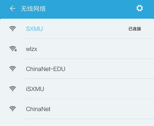 1、第一步:打開無線終端的WLAN服務(wù)功能,如能找到名為“SXMU”或“iSXMU”的SSID,則說明該區(qū)域已經(jīng)實(shí)現(xiàn)校園無線網(wǎng)覆蓋,具備相應(yīng)的接入條件。見圖1。