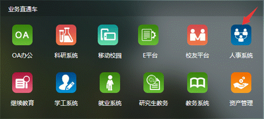 2、在業(yè)務(wù)直通車欄目下點(diǎn)擊人事系統(tǒng)如圖2,無(wú)需輸入用戶名和密碼二次認(rèn)證,進(jìn)入人事系統(tǒng) ,如圖3。