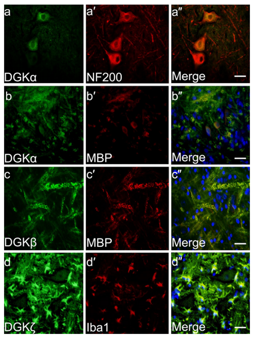 DGK各亞型在神經元、少突膠質細胞和小膠質細胞的表達