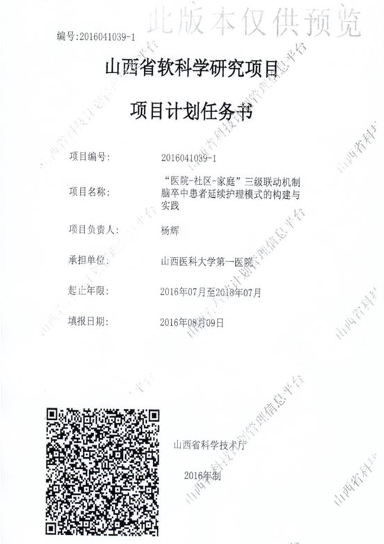 針對腦卒中患者疾病特點,學(xué)科臨床護理團隊基于山西省軟科學(xué)項目《“醫(yī)院-社區(qū)-家庭”(HCH)三級聯(lián)動機制腦卒中患者延續(xù)護理模式的構(gòu)建與實踐》,構(gòu)建了適合我國腦卒中患者的護理評價體系,制定了腦卒中患者延續(xù)護理模式實踐指南與腦卒中延續(xù)護理技術(shù)規(guī)范,創(chuàng)建了延續(xù)護理網(wǎng)絡(luò)支撐平臺,最終規(guī)范化該延續(xù)護理模式,實現(xiàn)護理服務(wù)“醫(yī)院-社區(qū)-家庭”無縫銜接。
