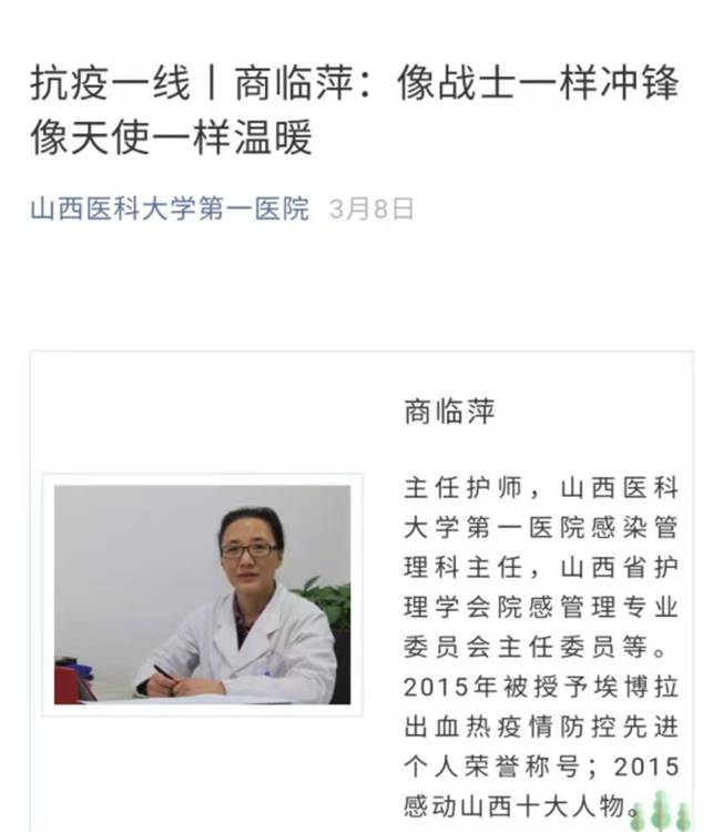在她帶領(lǐng)下,先后共6名導(dǎo)師、11名在讀研究生、百余名畢業(yè)生及近百名本科畢業(yè)生馳援湖北奮戰(zhàn)在抗疫一線。院感專家商臨萍帶隊輾轉(zhuǎn)省內(nèi)疫情最兇險的地方指導(dǎo)抗疫;臨床護理專家郭錦麗專業(yè)統(tǒng)籌,保證一線抗疫力量,守護山西,取得“雙零”戰(zhàn)績。后方師生或投身當(dāng)?shù)胤酪咧驹阜?wù)中,筑牢后防線;或以筆為援,以藝戰(zhàn)疫,匯聚精神力量。同時以理論促實踐,團隊邊實戰(zhàn)邊總結(jié),發(fā)表抗疫相關(guān)學(xué)術(shù)論文3篇,申報省級課題1項,為全國抗疫提供借鑒參考,貢獻“山西護理力量”!