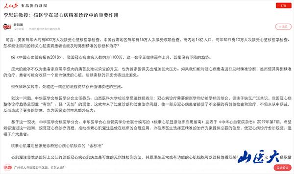 4月17日,人民日報客戶端新媒體平臺“人民號”中的“新聞眼”以《李思進教授:核醫學在冠心病精準診療中的重要作用》為題發表了我校校長李思進教授的文章,他在文章中表達了“規范冠心病診療流程,推動核素心肌灌注顯像在臨床的合理應用,為臨床醫生選擇更精準的治療方案提供必要的信息,使冠心病診療愈加規范”的觀點。