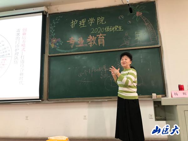 11月5日下午,護理學院在迎澤校區舉辦了研究生“導師說”專業教育活動。護理學院院長、博士生導師楊輝教授以《護士的精進與修養》為題,為2020級新生講授了一堂生動的專業教育課。