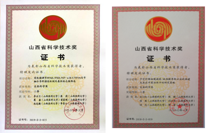 | 點擊數:}近五年,承擔國家及省部級各類科研項目90余項,累計科研經費3200余萬元;獲得省部級以上獎勵4項。發表SCI收錄論文180余篇;獲得國家發明專利授權30余項。圍繞區域醫藥行業需求,開展產學研合作與研究,產出一系列標志性成果,有力推動了學科建設與產業創新良性互動。1、山西省“天然來源創新藥物的研究與開發”科技創新重點團隊研發中的一類新藥候選物,與振東制藥集團簽訂了合作開發協議,已完成全部臨床前研究,有望成為糖尿病腎病的新型特異性治療藥物。2、鑒于目前中藥評價指標成分與功效關聯性不強的瓶頸問題,藥物分析學科團隊創新性構建了高通量活性篩選辨析體系,成功用于25種大宗藥材及復方中質量標志物的確定,提供了與藥效關聯密切的中藥質量評價方法;受邀撰寫TOP 1期刊綜述,獲山西省科技進步二等獎一項。3、青蒿素研究團隊首次闡明自身誘導腸和肝首過代謝是導致時間依賴性生物利用度降低主要原因;并基于該代謝特點及耐藥相關因子,構建系列青蒿素類、紫杉醇類等靶向抗瘧/抗腫瘤納米遞藥系統,顯著改善PK/PD特性,為攻克青蒿素耐藥性難題提供新策略,入選國家青蒿素研究聯盟理事單位。4、針對山西部分道地藥材質量標準落后及道地性形成機制不明難題,潞黨參研究團隊明確了發揮生物調控活性的物質基。⒌賴匾┎囊糯逑,創新性構建基于多糖的道地性特征體系;制訂了17個道地藥材標準;獲2項國家重點研發計劃等資助等成果。5、臨床藥理學團隊突破臨床上細菌耐藥和肝損傷缺少特異性標志物的瓶頸,創建近 500 種差異蛋白分子信息數據庫首次提出 gyrB 突變在銅綠假單胞菌對喹諾酮類藥物耐藥中的作用,創造性提出的抗生素用藥方案在省內外 7 家三甲醫院推廣,獲邀國際抗生素耐藥性學術大會發言;篩選的有機錫致脂質合成及代謝紊亂相關的潛在診療靶點得到國際同行認可,獲省自然科學二等獎。