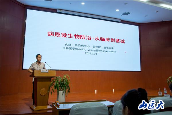 7月4日,智匯山醫(yī)·學(xué)術(shù)交流會在我校中都校區(qū)圖書館一層多功能報告廳舉行。清華大學(xué)醫(yī)學(xué)院長聘教授沈曉驊、清華大學(xué)傳染病中心研究員向燁作學(xué)術(shù)交流。各院系教師代表、研究生代表參加。校黨委人才工作部部長蔡蕊主持。