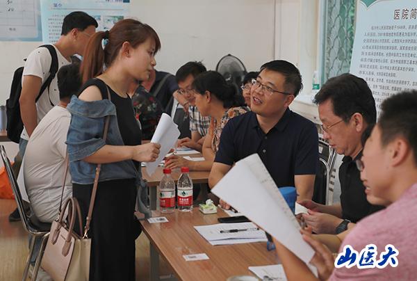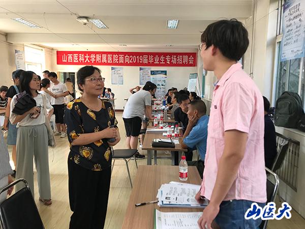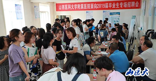 7月7日下午,我校在迎澤校區(qū)圖書館舉辦“c7c7.app附屬醫(yī)院面向2019屆畢業(yè)生專場招聘會”,前來參加此次招聘會的附屬醫(yī)院有:第一醫(yī)院、第二醫(yī)院、口腔醫(yī)院、附屬汾陽醫(yī)院、附屬臨汾醫(yī)院、附屬運城醫(yī)院、附屬太原中心醫(yī)院、附屬忻州醫(yī)院、附屬呂梁醫(yī)院、附屬晉中醫(yī)院、附屬眼科醫(yī)院、附屬陽泉醫(yī)院共12家單位,600余名畢業(yè)生參會,提供700余個就業(yè)崗位。校黨委副書記賀培鳳親臨招聘會現場指導工作。