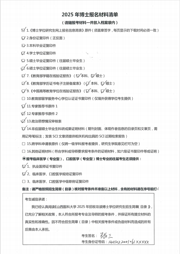 5.報考臨床醫學博士專業(專業型)或口腔醫學博士專業(專業型)的往屆考生須提交執業醫師資格證、住院醫師規范化培訓合格證或主治醫師及以上的職稱材料;