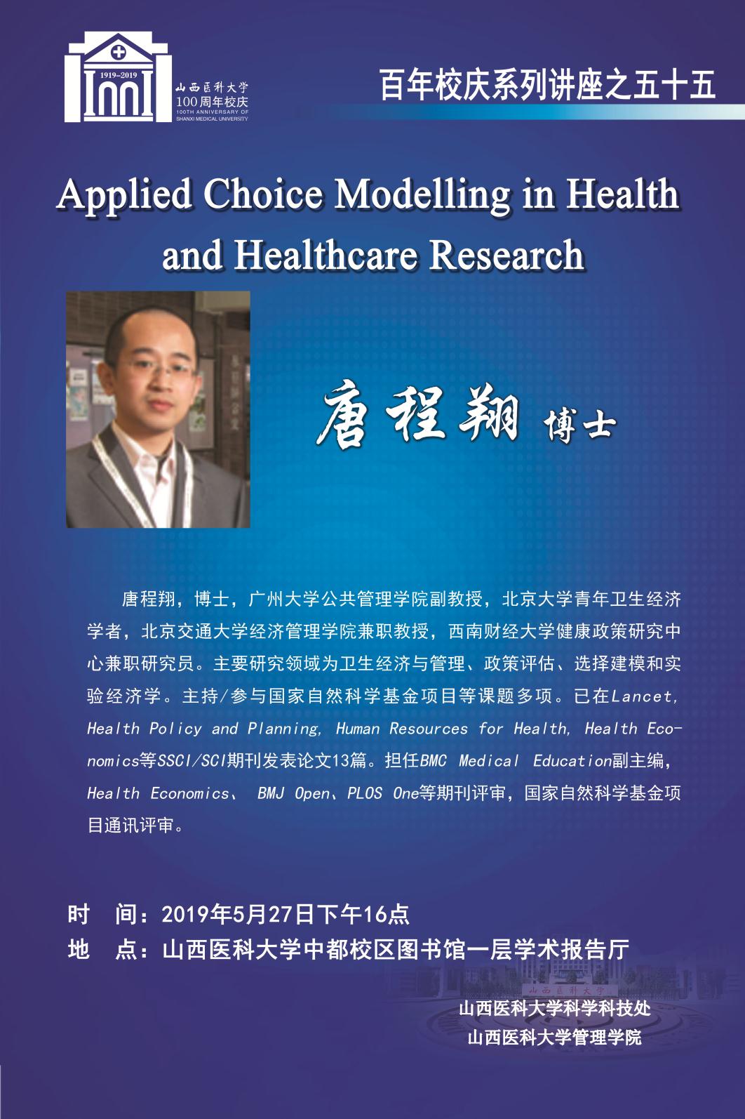 唐程翔博士——Applied Choice Modelling in Health and Healthcare Research