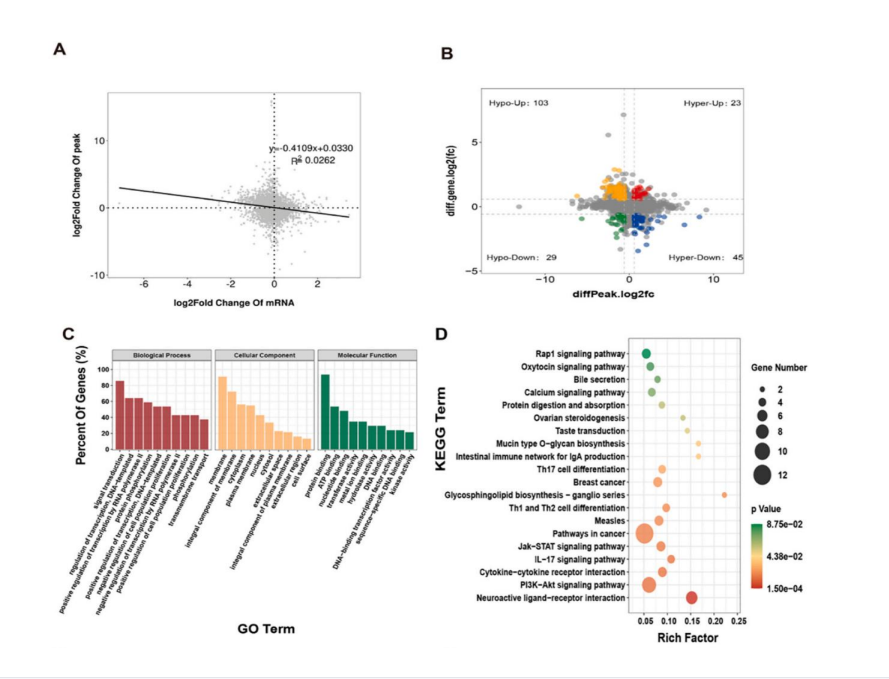 圖 4.聯合分析 CdCl2暴露組和對照組的 m 6A 甲基化和 mRNA 的表達