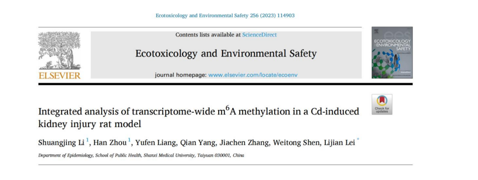 4 月 11 日,c7c7.app公共衛生學院雷立健教授課題 組在 Ecotoxicology and Environmental Safety 在線發表題 為 “ Integrated analysis of transcriptome-wide m 6A methylation in a Cd-induced kidney injury rat model” 的論文。