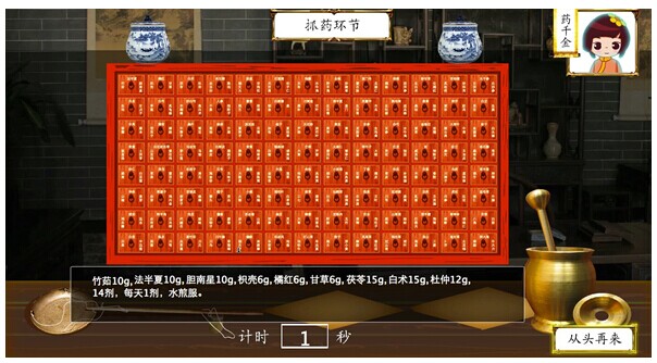 模擬演示請點(diǎn)擊:人體經(jīng)絡(luò)、陰陽五行、中藥房游戲 數(shù)字中醫(yī)藥??櫓饕治頌寰紜⒁躚粑逍小⒛D庖┓咳鮒饕D庀低?。人體經(jīng)絡(luò)系統(tǒng)通過數(shù)字動(dòng)畫模擬真實(shí)人體經(jīng)絡(luò)走行,直觀展示經(jīng)絡(luò)的走行及與疾病的相關(guān)性;陰陽五行系統(tǒng)采用動(dòng)畫形式形象展示中醫(yī)氣血陰陽和五臟六腑等經(jīng)典中醫(yī)理論,達(dá)到對中醫(yī)學(xué)理論的深入展示;模擬藥房設(shè)計(jì)成游戲形式,利用多媒體模擬仿真系統(tǒng)通過模擬真實(shí)藥房場景,使學(xué)生在實(shí)驗(yàn)室就能身臨其境體驗(yàn)中藥房抓藥、藥材查詢、煎藥等過程。依托數(shù)字中醫(yī)藥??椋行哪殼翱溝鬧饕D夥掄媸笛橄钅坑腥頌逯饕繾咝心D饈笛?、陰陽五行相生相克模擬實(shí)驗(yàn)及400種中藥材的藥房體驗(yàn)共三項(xiàng)開放實(shí)驗(yàn),作為中醫(yī)基礎(chǔ)理論、中藥學(xué)、中藥方劑學(xué)等課程實(shí)驗(yàn)教學(xué)的重要內(nèi)容,深受學(xué)生好評。見圖1、2、3、4。