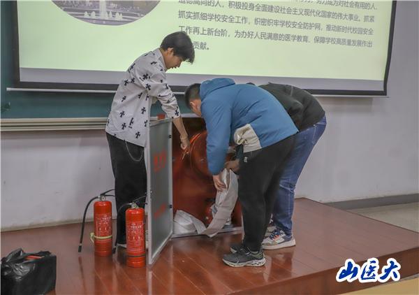 宣講活動中,“安全騎兵宣講團”二號宣講員張玉美同學從經濟安全、人身安全、交通安全、消防安全四個方面作了生動宣講;三號宣講員李婉生收集高校近三年的事故案例,通過反面警醒增強大家的安全意識;四號宣講員張銀珠結合消防滅火器的使用、防煙面罩的佩戴及室內消火栓的應急操作,手把手地給同學們作了講授;生動的案例視頻,時時刻刻在警醒同學們要筑牢安全意識。