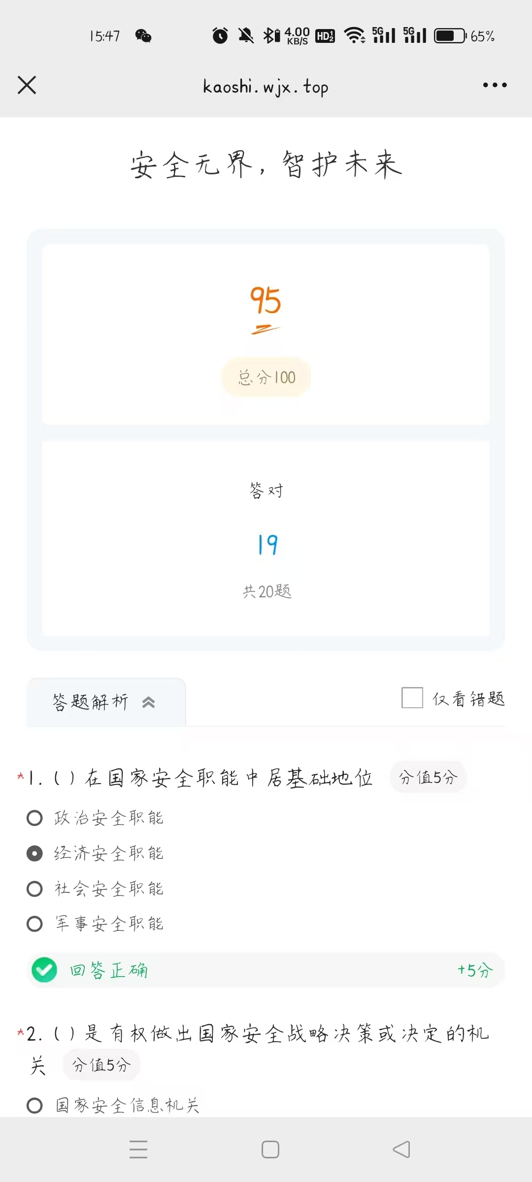 學(xué)院分團(tuán)委4月以全民國(guó)家安全教育日為契機(jī)開(kāi)展的“安全無(wú)界·智護(hù)未來(lái)”知識(shí)競(jìng)賽,吸引了學(xué)院全體師生的積極參與。知識(shí)競(jìng)賽內(nèi)容涵蓋國(guó)家安全的二十大領(lǐng)域,也包含網(wǎng)絡(luò)安全、生物安全、海外利益保護(hù)等新興議題。知識(shí)競(jìng)賽的開(kāi)展,促進(jìn)了學(xué)院全體師生安全意識(shí)的覺(jué)醒,點(diǎn)燃了用智慧守護(hù)校園、守護(hù)家國(guó)的信念之火。