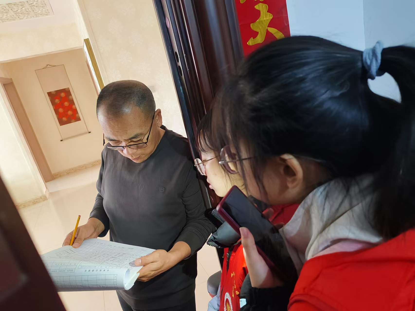 活動開始前,榮軍社區(qū)工作人員對同學(xué)們進(jìn)行了簡短培訓(xùn),了解了住戶核對信息的流程、注意事項以及志愿者信息表的使用方法。隨后,攜帶志愿者信息表逐一對入戶進(jìn)行信息核對。同學(xué)們耐心仔細(xì)核對住戶個人信息,包括姓名、聯(lián)系方式、家庭成員情況等。同時,也積極向住戶宣傳社區(qū)管理的相關(guān)政策,增強(qiáng)他們的社區(qū)歸屬感和責(zé)任感。活動結(jié)束后,同學(xué)們與社區(qū)工作人員進(jìn)行了交流,分享了此次活動的收獲和感悟,為今后的志愿服務(wù)積累了寶貴經(jīng)驗。