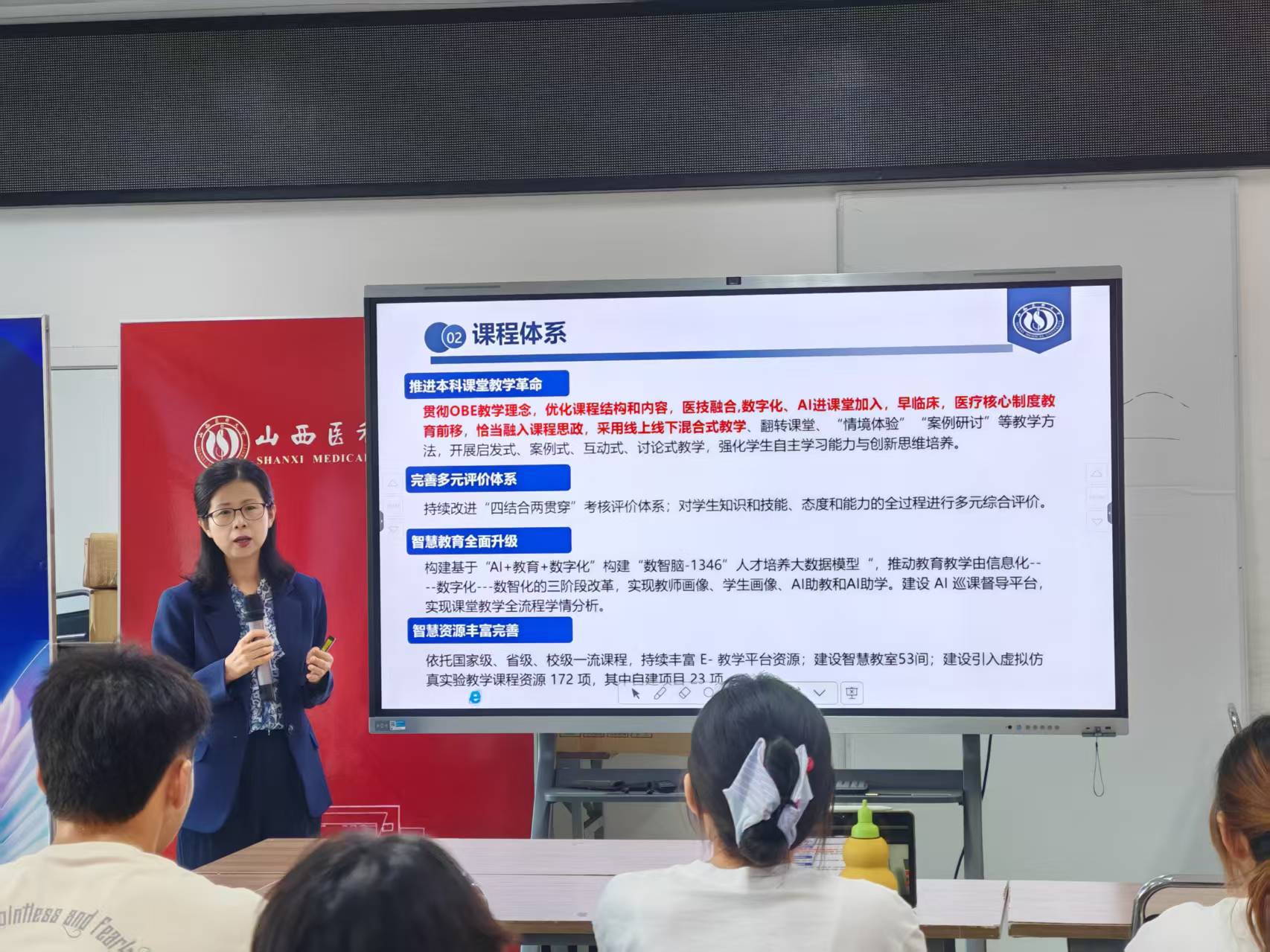 培訓(xùn)緊緊圍繞本科教育教學(xué)審核評(píng)估的核心內(nèi)容展開,副院長(zhǎng)王效春介紹了醫(yī)學(xué)影像學(xué)院發(fā)展史,系統(tǒng)闡述了醫(yī)技融合、早臨床、智慧教育等關(guān)鍵議題;對(duì)醫(yī)學(xué)影像學(xué)、醫(yī)學(xué)影像技術(shù)兩個(gè)專業(yè)的專業(yè)人才培養(yǎng)方案進(jìn)行了講解,確保學(xué)生了解熟悉自己所學(xué)專業(yè)的培養(yǎng)方案;并指出教育教學(xué)應(yīng)堅(jiān)持“OBE理念”,構(gòu)建“兩性一度”課程體系,強(qiáng)化“專業(yè)基礎(chǔ)+考核特色”課程體系建設(shè),重構(gòu)“一軸四驅(qū)”實(shí)踐教學(xué)體系,全面提升學(xué)生的實(shí)踐創(chuàng)新能力;同時(shí)對(duì)學(xué)院的師資隊(duì)伍建設(shè)、教學(xué)資源、質(zhì)量保障等做了詳細(xì)的講解。
